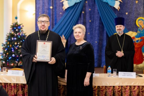 В рамках Рождественских образовательных чтений Олег Анохин, протоиерей, председатель отдела религиозного образования и катехизации Тульской епархии, настоятель храма святителя Алексия города Тулы наградил Благодарностью отдела религиозного образования и катехизации Тульской епархии руководителей образовательных организаций города Тулы: